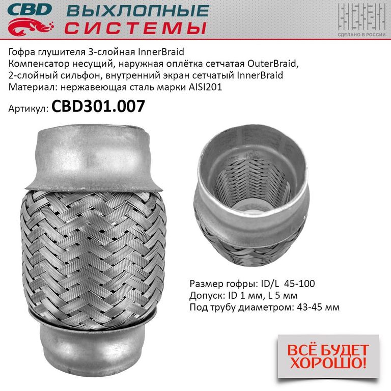 Описание конструкции: Компенсатор несущий, наружная оплётка сетчатая OuterBraid, внутренний экран сетчатый InnerBraid, 2-слойный сильфон
