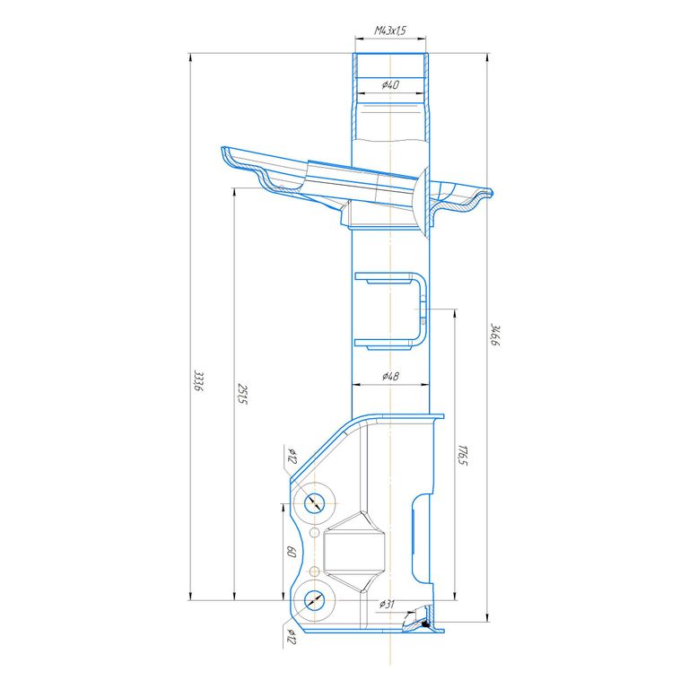 Корпус стойки телескопической передней подвески, применяется для сборки стоек телескопических. Труба Ø48х2.5мм, резьба внутренняя М43.х1.5мм, внутренняя проточка Ø40мм. Под шток Ø20мм.