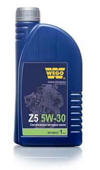 WEGO Z5 5W-30- полностью синтетическое моторное масло для применения в высоконагруженных (в т.ч. турбированных) бензиновых и дизельных двигателях легковых автомобилей, микроавтобусов и легких грузовиков, где производителем предписано использование масел категории API SN/CF.